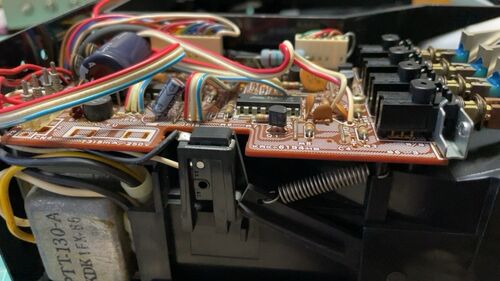 動かないしパイロットランプの類もないので 電源が入ってるのかもわかりませんがな 右上の電源コンデンサにテスター当てると30V位(忘れた)出たので電源はOK牧場 次はスライドメカだなも ここまでは簡単に分解できるんだけんどもここから先はどうすれば・・…